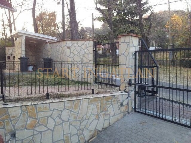 A 380 sqm 3-storey detached house for rent, close to the Lycée francais, built in 1992, on the border of Máriaremete-Budaliget. There are 2 living rooms, study area, kitchen, 5 bedrooms, 5 bathrooms (hydro-massage bathtubs, steam-hydromassage cabinets), indoor swimming pool, sauna, 1 large terrace with garden access, 2 small terraces + 2 balconies, laundry room, garage for 4 cars + 2 parking space. Extras: electr. shutters, 2 alarm systems, air-cond. on the GF, energy saver boilers. The house is available without furniture. Pets according to agreement. Floor-plan!