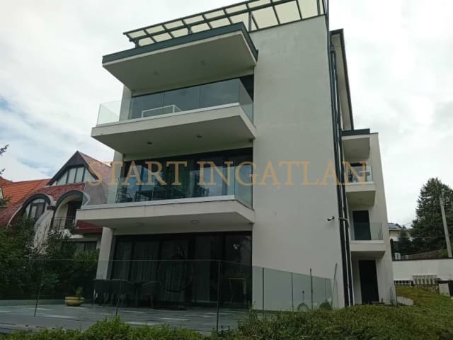 110 sqm flat for rent on 3rd floor (elevator, uppermost level) in a 5-flat house, built in 2023, in a landscaped shared garden. The apartment consists of a livign room with open-plan kitchen, 2 big balconies (one of them is covered), 3 bedrooms, a laundry room (it was the guest toilet, can be restored), 1 bathroom with otilet and 1 shower with toilet. It is facing to SW, equipped with A/C, available with modern furniture. There are parquet and cold flooring, floor and radiator heating, garage for 1 car. Further spaces are available. The common cost is 150 EURO/month.