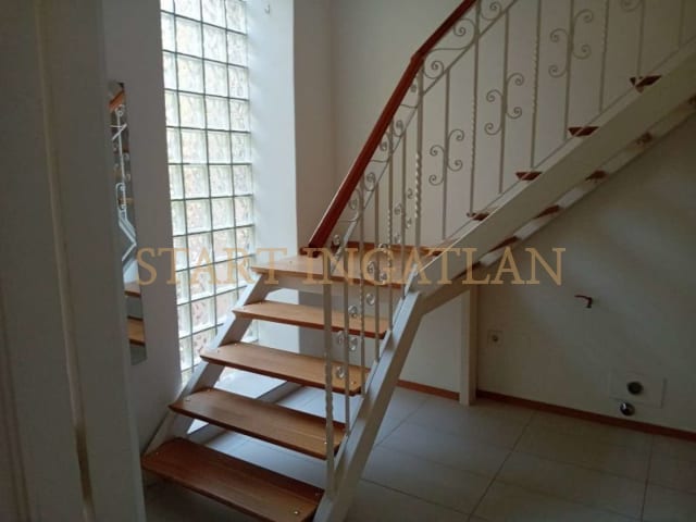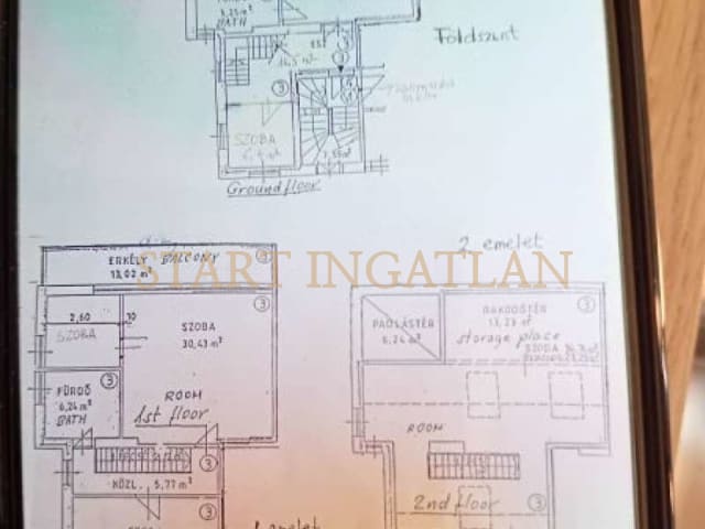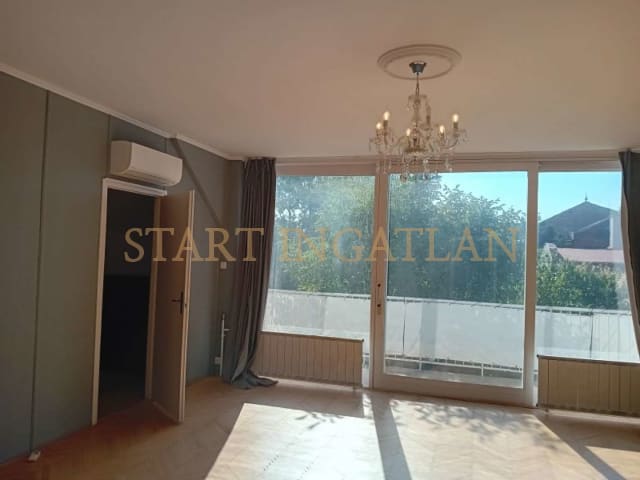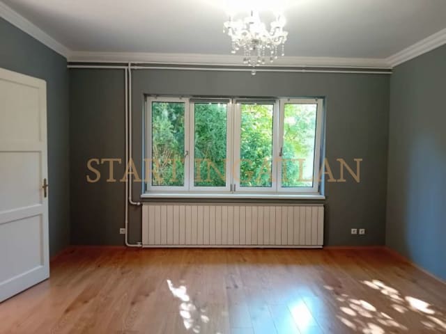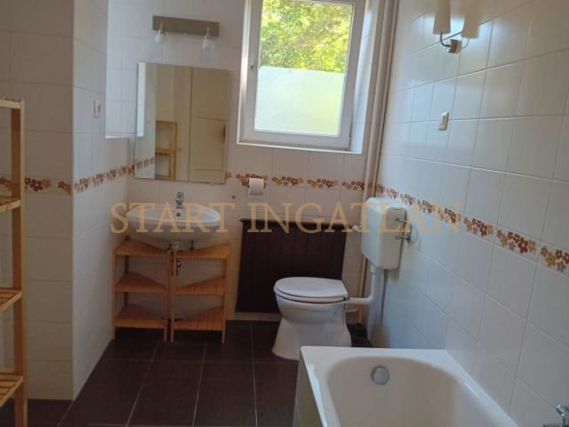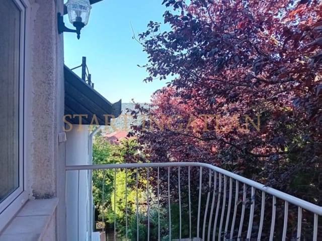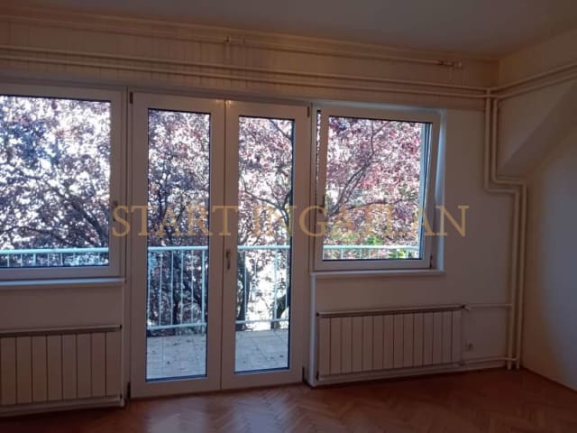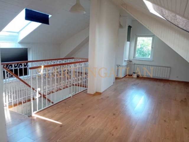 188 sqm, 3-storey flat for rent on 1st floor in a renovated, 4-flat house, in shared garden. Lower level: living room, eat-in kitchen, 1 small study, 1 bathroom. Middle level: 2 bedrooms, 2 balconies, small vew, 1 bathroom, closet. Upper level: large room. Small part of garden with torage house, parquet and cold flooring, A/C, unfurnished. The common cost is 15.000 HUF/month, the utilitxóy average is cca 50-60.000 HUF/month. Free parking on the street. Pets are welcome! Floor-plan!