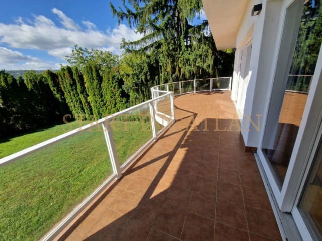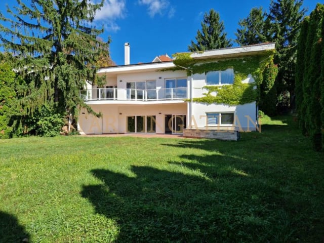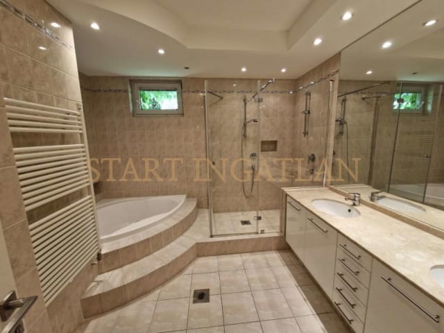 WITH 2 YEARS CONTRACT FOR OFFICE, TOO! 400 sqm 2-storey detached house for rent, built in 1997, in 1079 sqm very nice garden. First level: living room with dining area, 3 bedrooms, study, equipped, separated kitchen, terraces. Garden level: guest room with window to the pool, indoor swimming pool, jacuzzi, shower, WC, laundry, boiler-room, fittnes corner, connect to the garden The house is unfurnished, built in AC, garage for 2 cars. Garage gate operating by remote control, automatic watering system. Pets are welcome! Floor-plan!