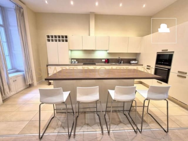 Kiadó a Belváros szívében, a Vörösmarty tér közelében egy 133 nm-es felújított lakás. A liftes társasház I. emeletén található, nagy belmagasságú ingatlan tágas nappalival, étkező-konyhával, 2 hálószobával és egy dolgozószobával, valamint 3 fürdőszobával rendelkezik. A jelenlegi részleges bútorozás mellett a teljes bútorozás és gépesítés is biztosítható a bérlő igényei szerint. A lakás fűtését és a meleg víz ellátását saját gázkazán biztosítja, a kellemes hőmérsékletet pedig légkondicionáló szolgáltatja. A közös ktg. 48.000 Ft/hó. Az ingatlan kiváló elhelyezkedést kínál, a közlekedés kiváló, a metró- és villamosmegállók pár perc sétára vannak, így a város bármely pontja gyorsan megközelíthető. Ez a hely tökéletes választás, ha szeretnénk élvezni a belváros pezsgő életét: kávézók, éttermek, prémium üzletek és kulturális programok mind könnyen elérhetők. Háziállat mehet!