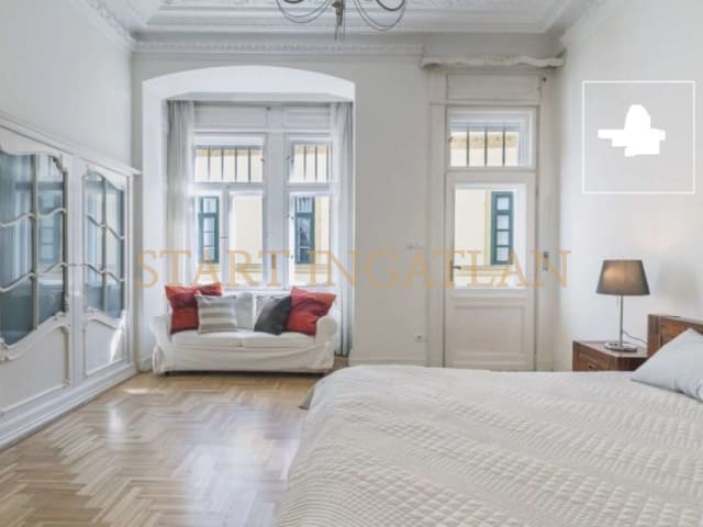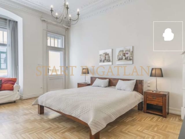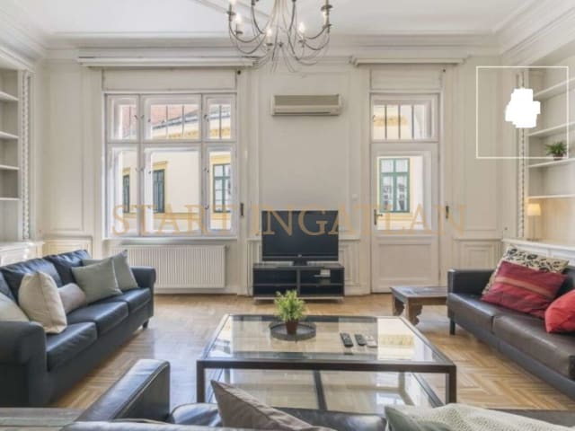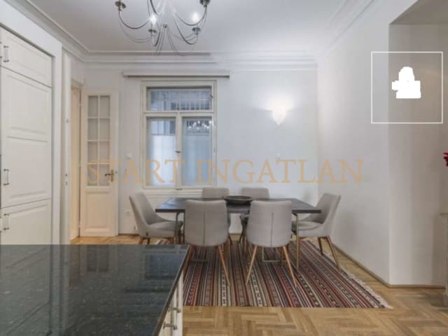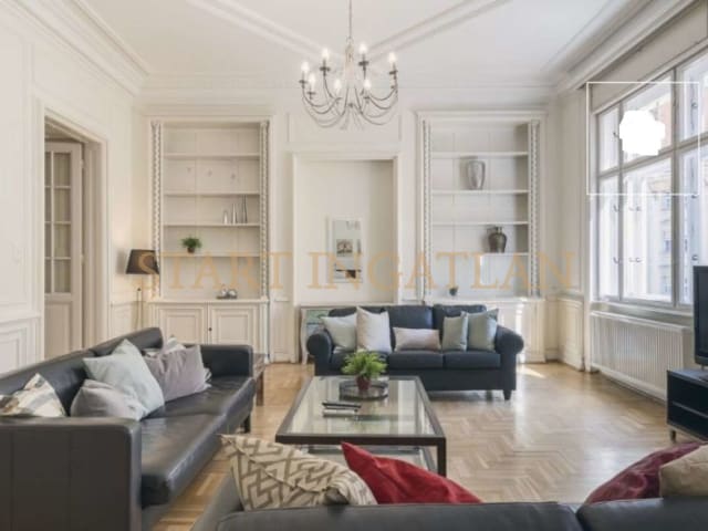 Kiadó a Belváros egyik legkedveltebb részén, egy Deák térhez közeli sétáló utcában elhelyezkedő, II. em-i (lift), 133 nm alapterületű lakás. Az ingatlan tágas és világos, 3 hálószoba, nappali, konyha-étkező, 2 fürdőszoba, előszoba és gardrób helyiségekkel rendelkezik. A lakás berendezése a modern életstílust szolgálja: kényelmes kanapék, francia ágyak a hálószobákban, beépített konyhabútor a teljes konyhagépparkkal, étkező garnitúra, valamint gardróbszekrények biztosítják a praktikusságot és komfortot. A fűtést és a meleg víz ellátást saját gázkazán szolgáltatja, míg a szobák hűtését légkondicionáló berendezések biztosítják, így egész évben kellemes klíma várja a lakókat. Közös ktg:: 30.000 Ft/hó. Háziállat nem mehet!