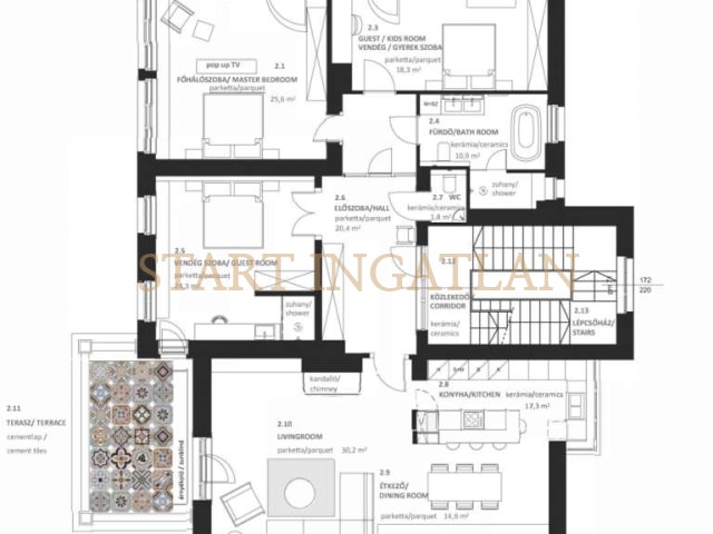 206 m2 3 hálószoba 3 fürdőszoba